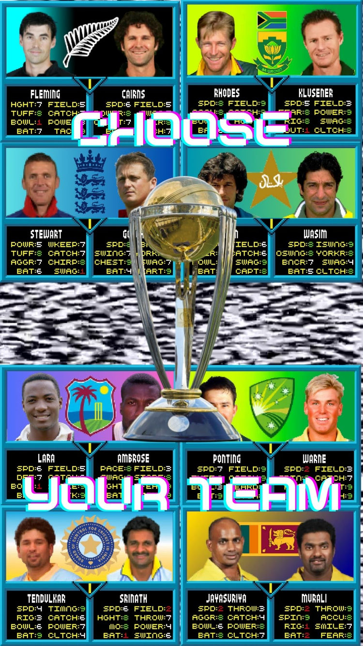 How many gold coins did you invest into Timezone playing NBA Jam in the 90s? All we wanted was the cricket version of it. Here it is in pixels T-Shirt form. Each country with their most 90s, most NBA Jam type duo ready to go. Who would you choose first?
