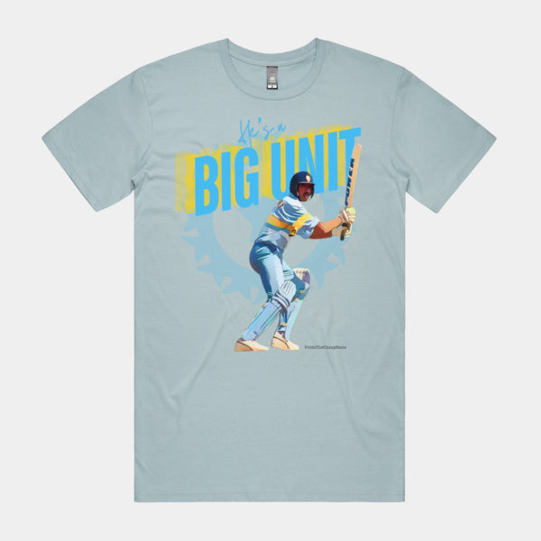 Ravi Shastri: the voice of unfiltered passion, unbridled enthusiasm, and now the patron saint of Big Units everywhere. This tee pays homage to the man who turned cricket commentary into an art form and gave us the ultimate compliment—'He's a Big Unit.' Whether you're stepping up to the crease or just hoping someone will one day call you a Big Unit too, this shirt is your ticket to Ravi-level swagger.
